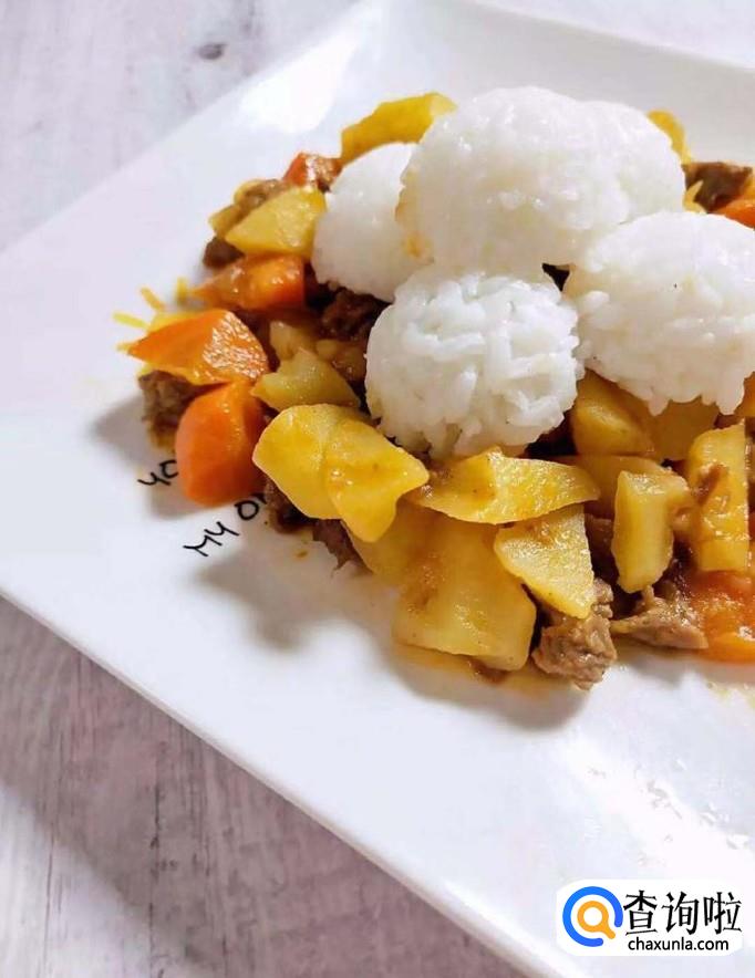 食材:牛肉,土豆,胡萝卜,食用油,葱,姜,番茄酱,清水,盐,米饭。