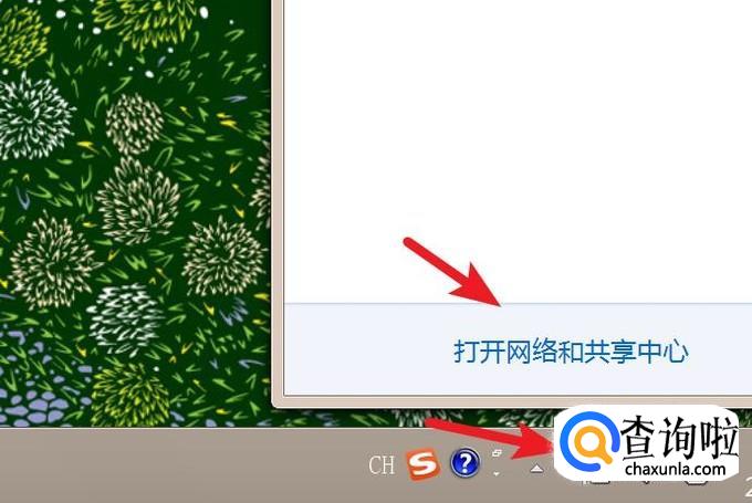 点击打开网络图标,点击‘打开网络和共享中心’