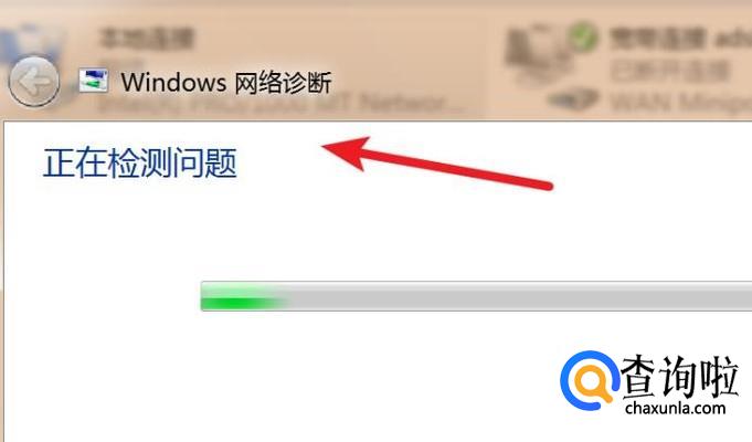 点击后,开始网络配置的诊断。在诊断的过程中,会自动修复发现的问题的。修复后就能上网了。