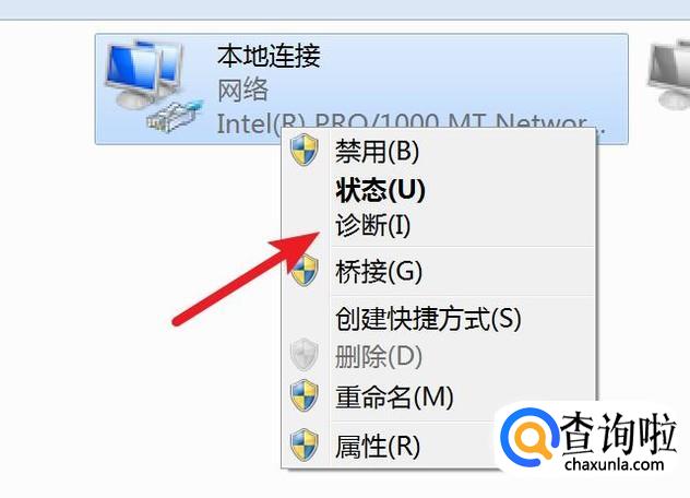 右键本地连接,然后点击‘诊断’