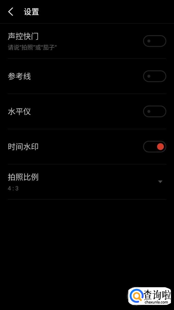 进入照相机设置界面,我们可以看到一个时间水印选项,这个选项就能够开启位置以及时间的显示。