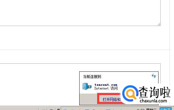 点开电脑右下角找到网络连接图标,点击【打开网络和共享中心】。