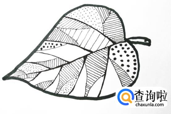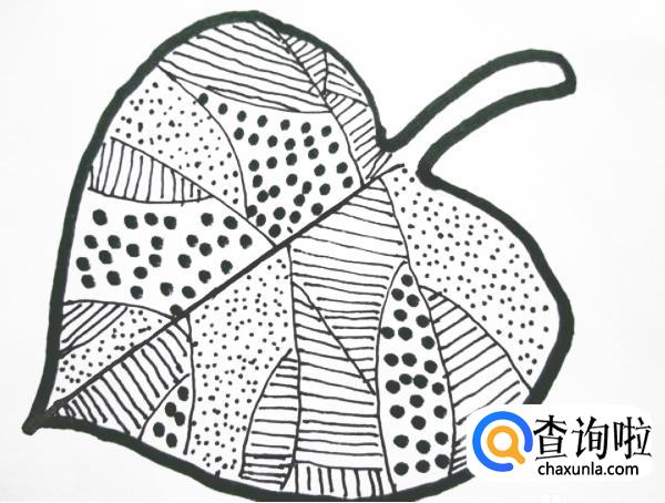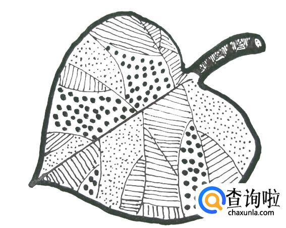 黑白线描画树叶是由点、圆点、横线、竖线、斜线共同组合完成。