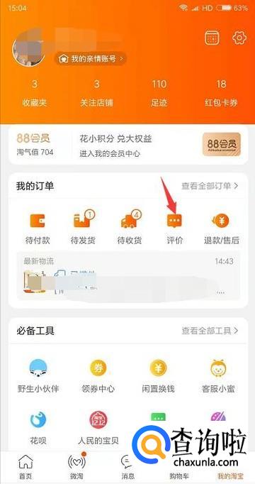 首先我们先打开淘宝,登录账号后在个人的页面里点击评价的选项。
