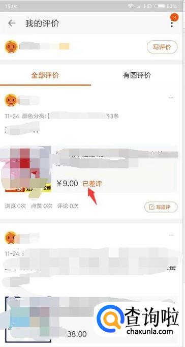 最后我们可以在我的评价里看到该商品已经差评。