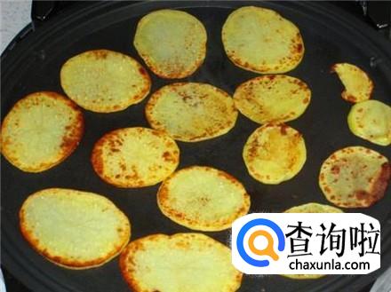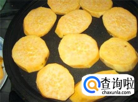 地瓜用刀切成片,不然你觉得一个整地瓜什么时间能用电饼铛烤熟?