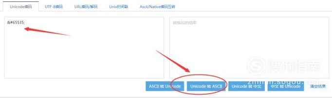 然后输入"",点击【Unicode转换ASCII】,如下图所示: