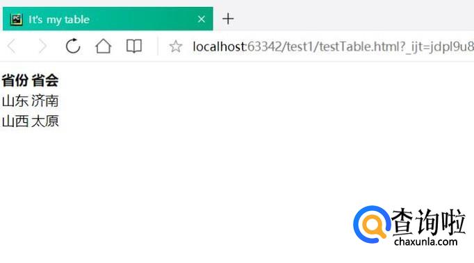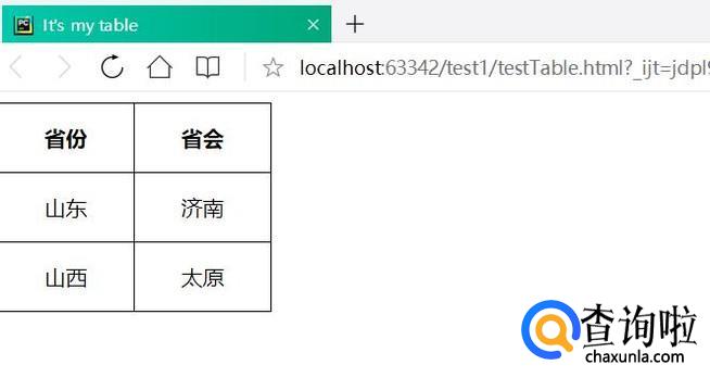 增加table标签,数据展示以省份和省会为例,代码如下