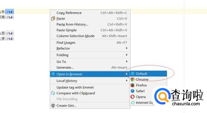 在代码的空白出右键,选择浏览器打开,选择默认即可