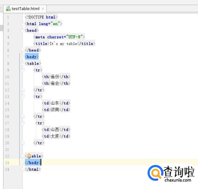 新建一个HTML文件,命名为testTable.html
