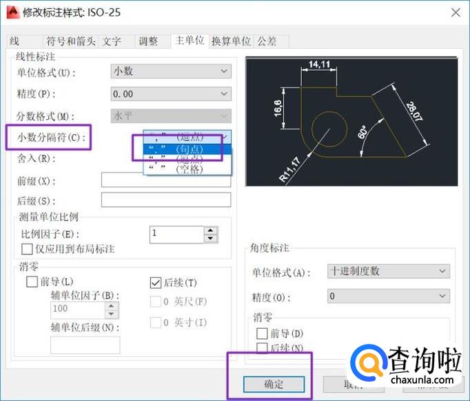 弹出的界面,我们选择小数分隔符中的句号,之后点击确定;