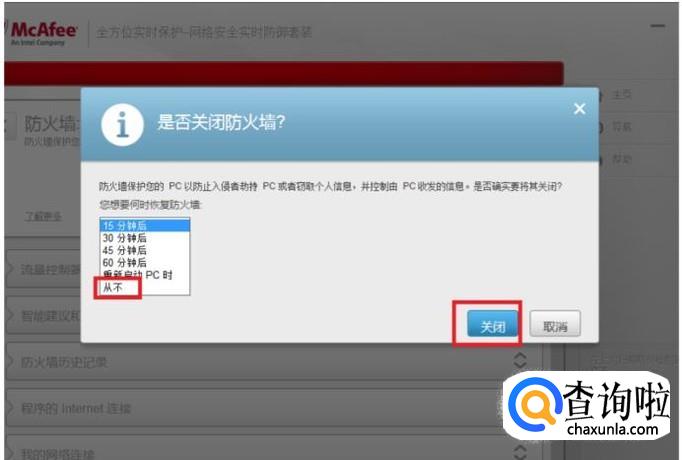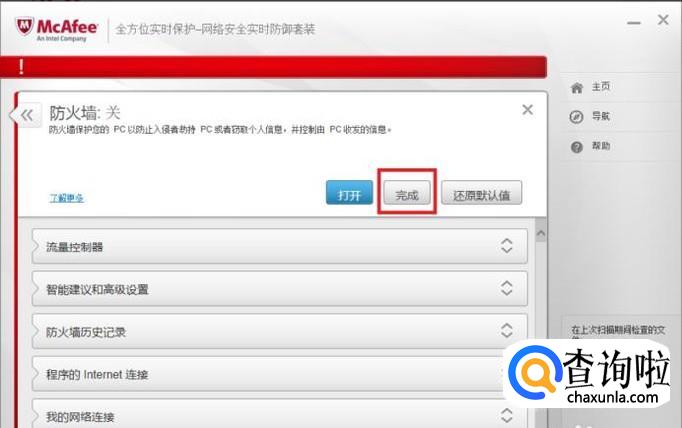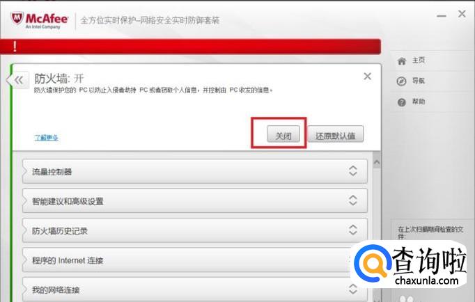 迈克菲如何关闭防火墙?