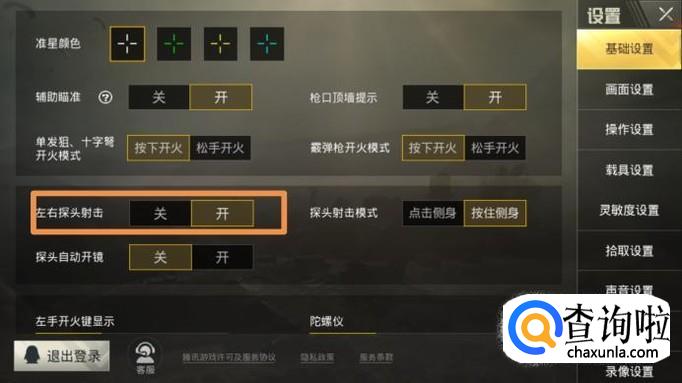 进去设置后,点击屏幕右上角的基础设置,将“左右射击探头”打开。