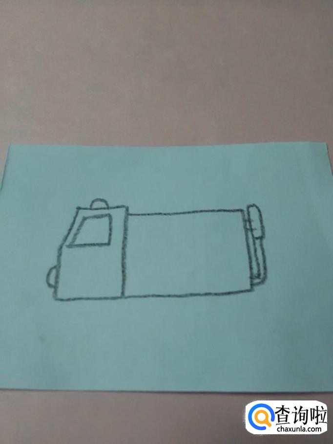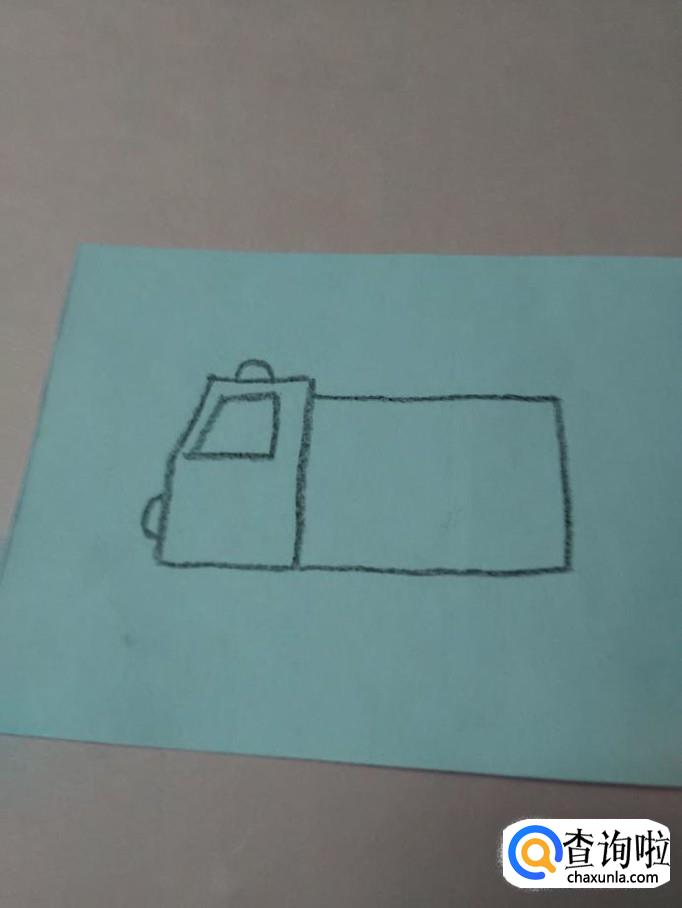 先用黑笔在纸上画一个缺少左上角的长方形,表示驾驶室。