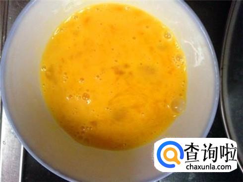 鸡蛋打进盆里,鸡蛋的多少根据你的饭量决定。然后加入一些黄油、白糖,再加上一点点食盐,当然你也可以只选择食盐或者白糖,用筷子搅拌均匀。
