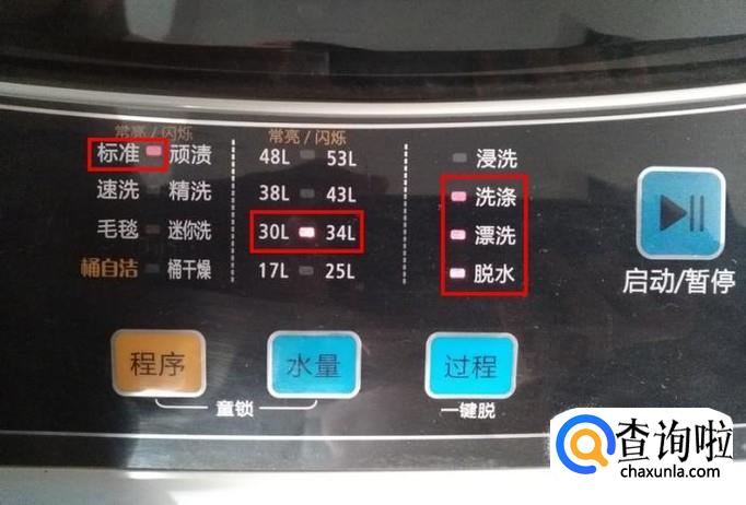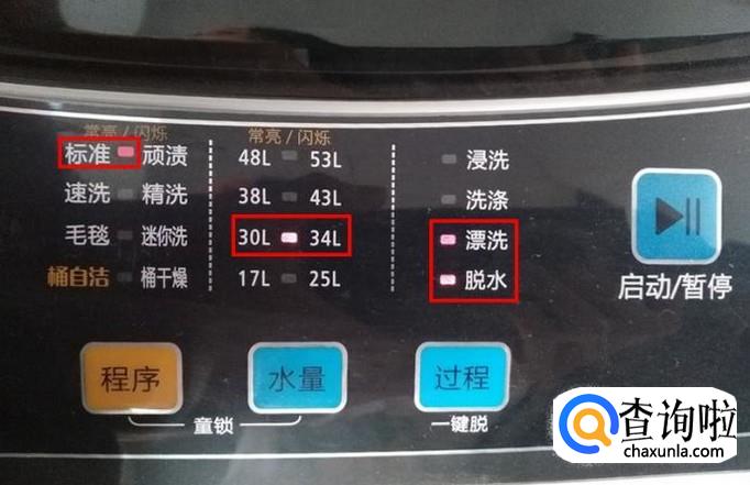 以标准程序为例,除了最后两项程序其他程序主要是在洗涤时间上有差异,既然没有自来水,水量就设置小一些,衣服自然就洗的少一些,过程一般默认为后三项,按启动按钮,此时洗衣机等待加水,开始往洗衣机里倒水,直到洗衣机开转,洗涤就加一次水;