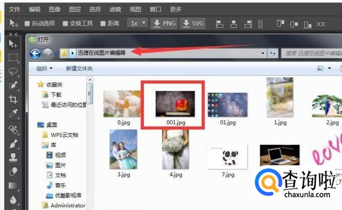 进入到在线图片编辑器界面里,看到左上方处有菜单栏,点击“文件——打开”,在弹出的打开窗口中,找到存放在电脑中的需要编辑的视频,选中视频后接着就点击“打开”。
