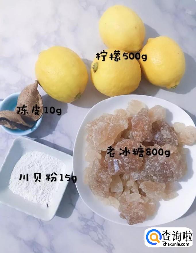 食材:陈皮10克,川贝粉15克,老冰糖800克,柠檬500克,盐适量。