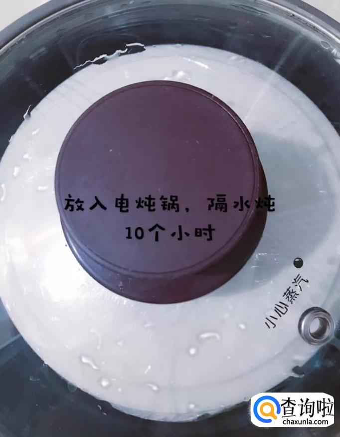 然后把砂锅放到电炖锅隔水炖十个小时,如下图所示。