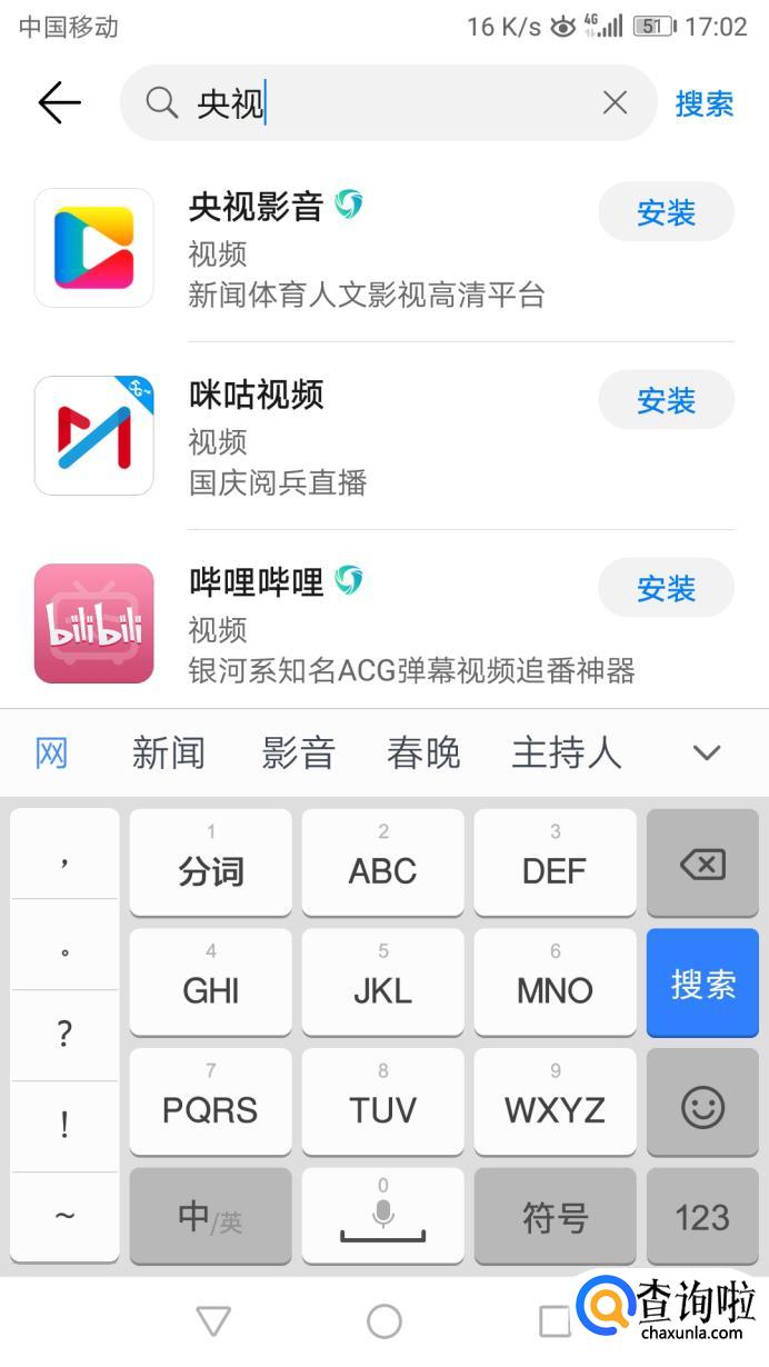 首先我们打开自己的应用商城,搜索下载一个央视影音。
