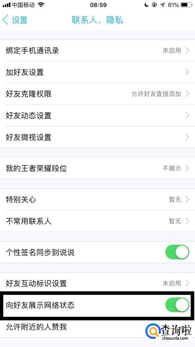 最后点击开启向好友显示网络状态开关就可以了。