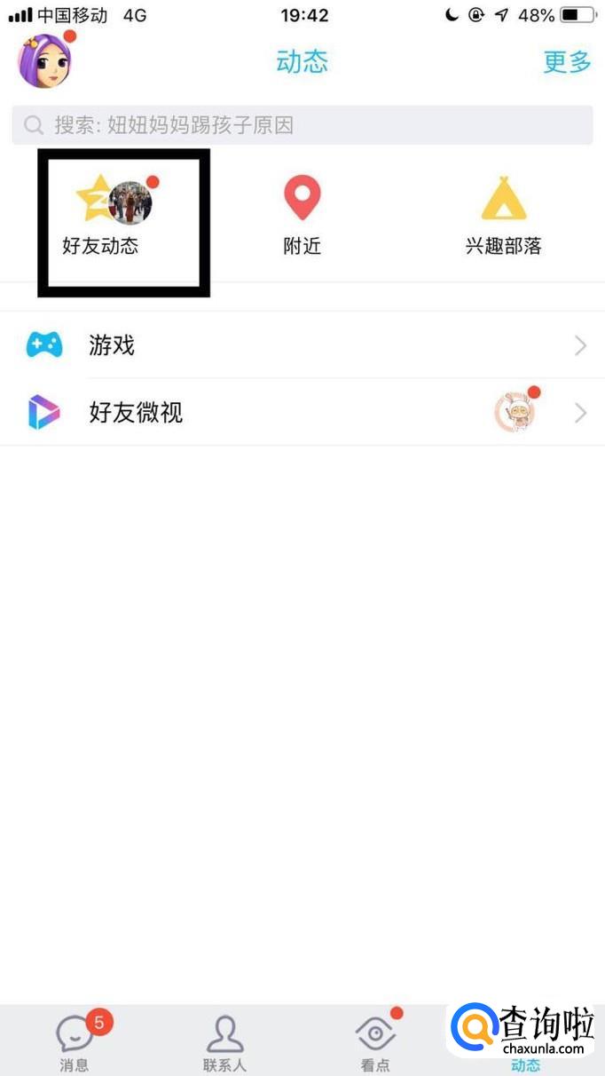 然后点击好友动态。