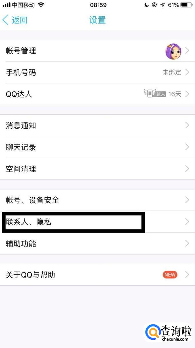 接着点击联系人、隐私。