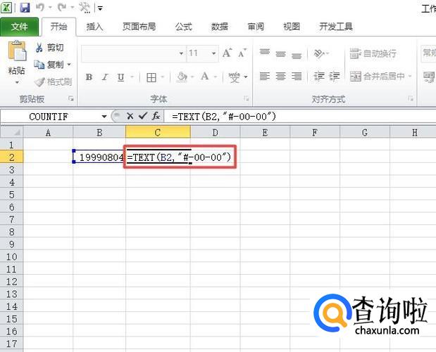 之后我们输入=TEXT(B2,"#-00-00"),然后我们按回车键;