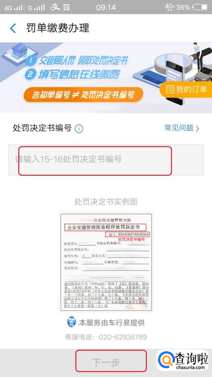 然后如图所示,按步骤填写处罚决定书编号等信息,就可以缴纳罚款了。