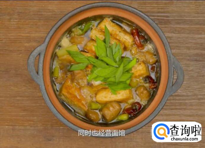 在砂锅中放入臭豆腐与肥肠,加清水,然后放入青蒜段、白胡椒、少许盐。