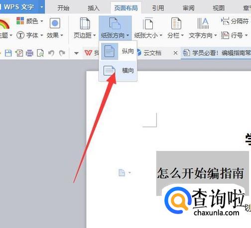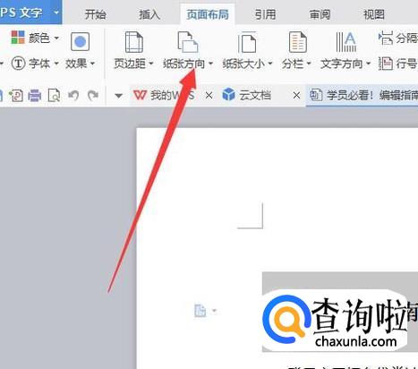 打开之后,点击“纸张方向”,进入下一页面,如图所示。