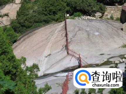 在泰山上有一个著名景点叫阴阳界,是一块巨大的浅白色的岩石带,表面非常光滑,人站在上面稍有不慎,就会失足跌落崖下。