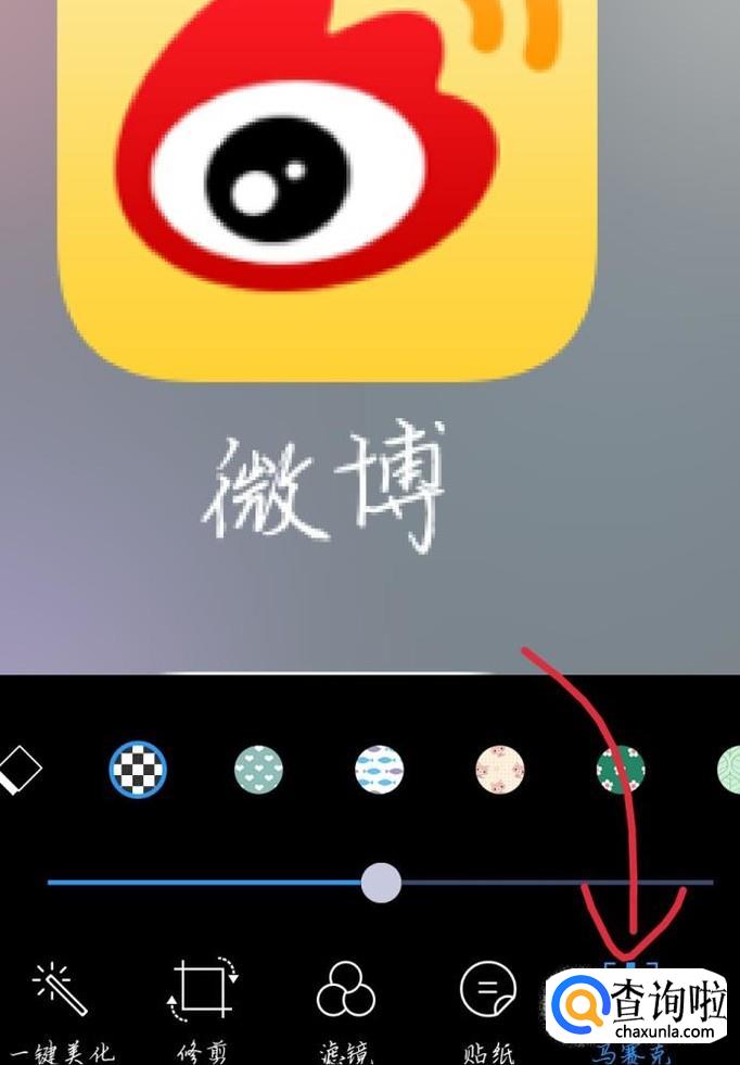 会出现一个新的界面,点击“马赛克”选项,如图1箭头所示。这样你就可以快速的给图片打上马赛克了。