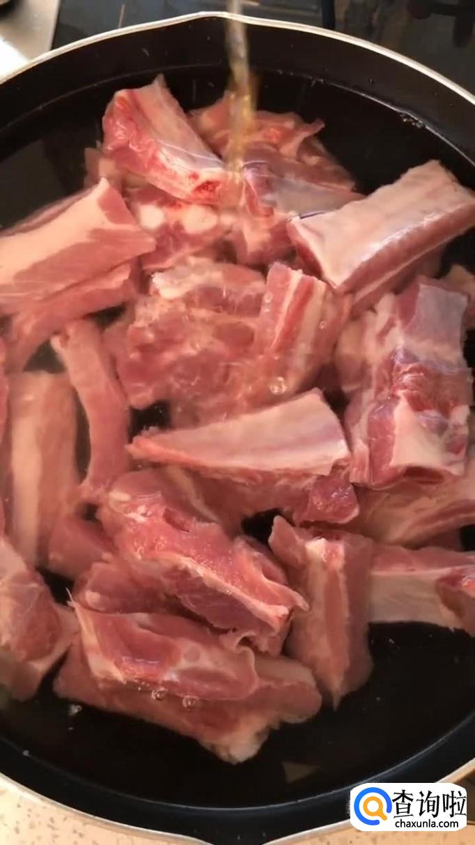 然后锅中放入适量的清水,把排骨倒进去并加入适量的料酒,开大火煮三分钟。小编选择这样做是为了更好的去除排骨中的血迹残余,同时也能够去除一部分的排骨的腥味。经过这样处理后的排骨味道会更加鲜美。