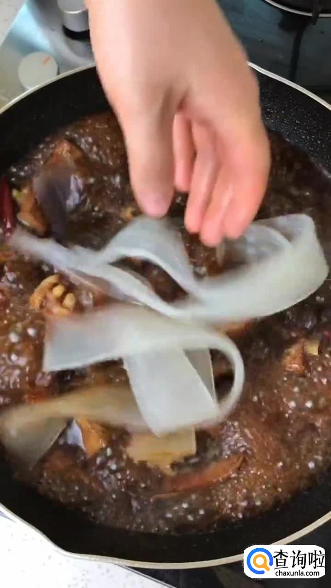 然后往锅中加入适量粉条,开小火再煮五分钟,如下图所示。