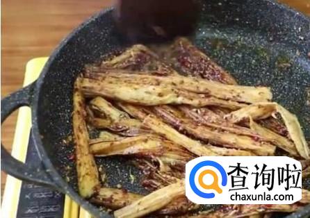最后把花椒、大料、辣椒粉爆香,接着倒入炸好的腐竹翻炒,根据口味加入适量的盐就可以了。