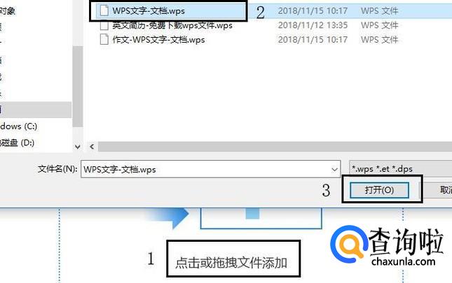 接下来鼠标点击转换器中间的空白处,接着就会弹出个窗,在该窗口内找到要转换为ppt的wps文件并使用鼠标左击选中它,然后再点击右下角的【打开】选项,就可以将这份wps文件添加到此转换工具当中。