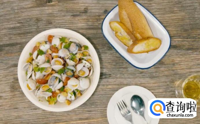 加入面包丁就可以出锅了,出锅后可以点缀一些荷兰芹叶。可以直接用煎锅的面包蘸着蛤蜊汤来吃,这样主食也就解决了。