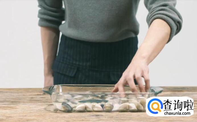 新鲜的蛤蜊买回来放在清水里静置吐沙,然后洗净外壳。