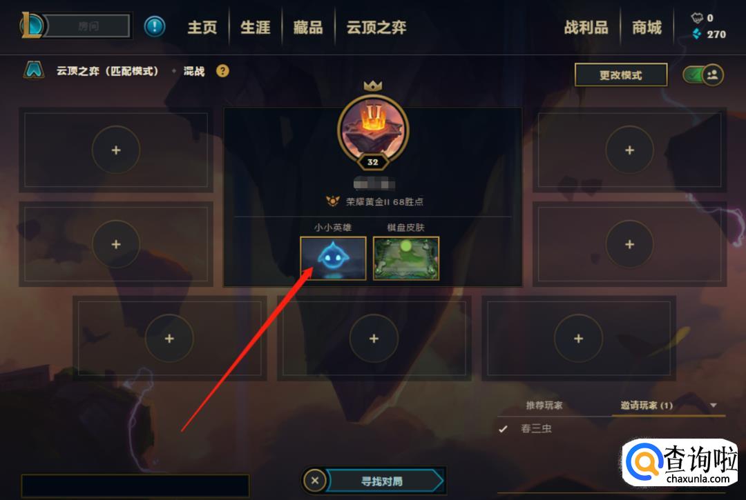 进入房间后,点击箭头所示的小小英雄图标: