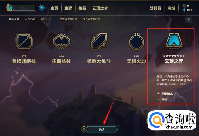 再点击云顶之弈的图标,点击确定,进入游戏房间: