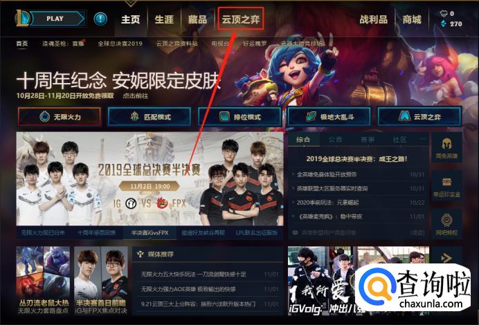首先打开英雄联盟,进入英雄联盟游戏界面,: