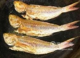 起一口锅,放入一点食用油,把小鱼放入锅中,小火慢煎,开大火容易糊。