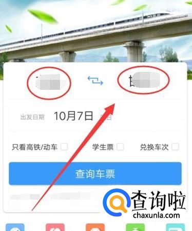 进入之后,在图示位置选好始发地和目的地,如图所示。