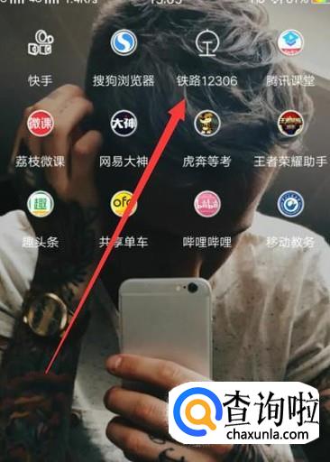 打开手机,找到铁路12306,点击并进入,如图所示。