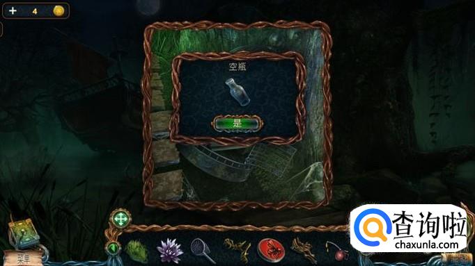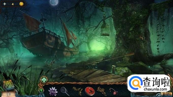 用锤子将桨上面的钉子敲掉,就可以的到一把桨。用桨敲掉树旁边的鸟笼,就可以得到一张星座图和一个空瓶。