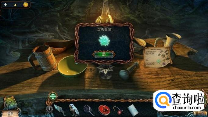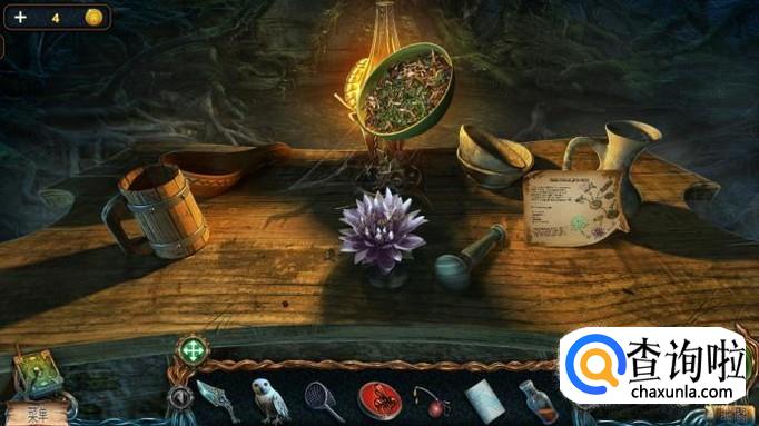 回到小矮人的屋子里,将收集到的蘑菇,草丛,树根,树皮放进碗里研磨,将莲花放在瓶子上,倒上研磨好的浆液和树浆,就可以得到可以召唤河神的莲花。