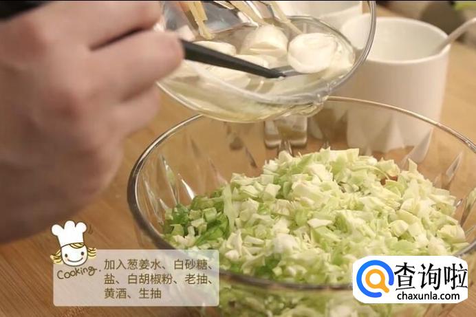 包菜和葱切碎,倒入肉末中。