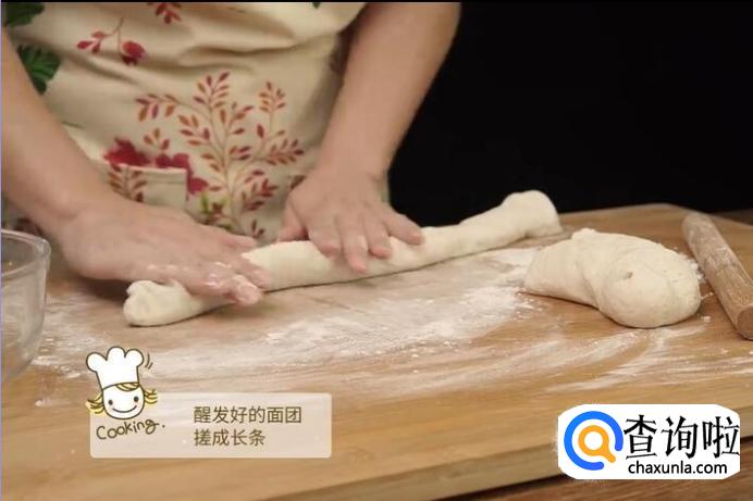 醒发好的面团搓成长条。