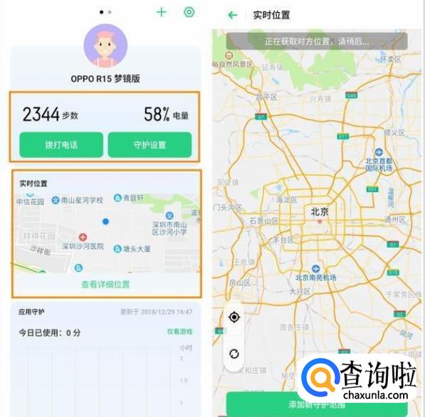 打开手机桌面上的【远程守护】然后登陆自己的OPPO账号,添加需要被守护的手机,准备扫码